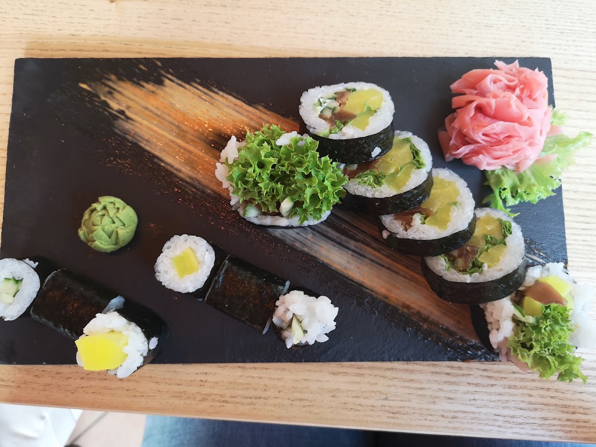 Returning home, we decided to eat sushi for dinner, and using the opinion of Google, we decided to test the pub with quite good reviews on our route. We did not disappoint. A pretty neat place with an idea for a Japanese-style finish ... but most importantly sushi ... Quite a few portions ok, let's fill up, but do not overeat, good quality products, fresh, made on the spot, you can look at the art of creating by chefs Japanese cuisine ... I recommend this place and although you need go of the main road to go down it's worth, I recommend ...