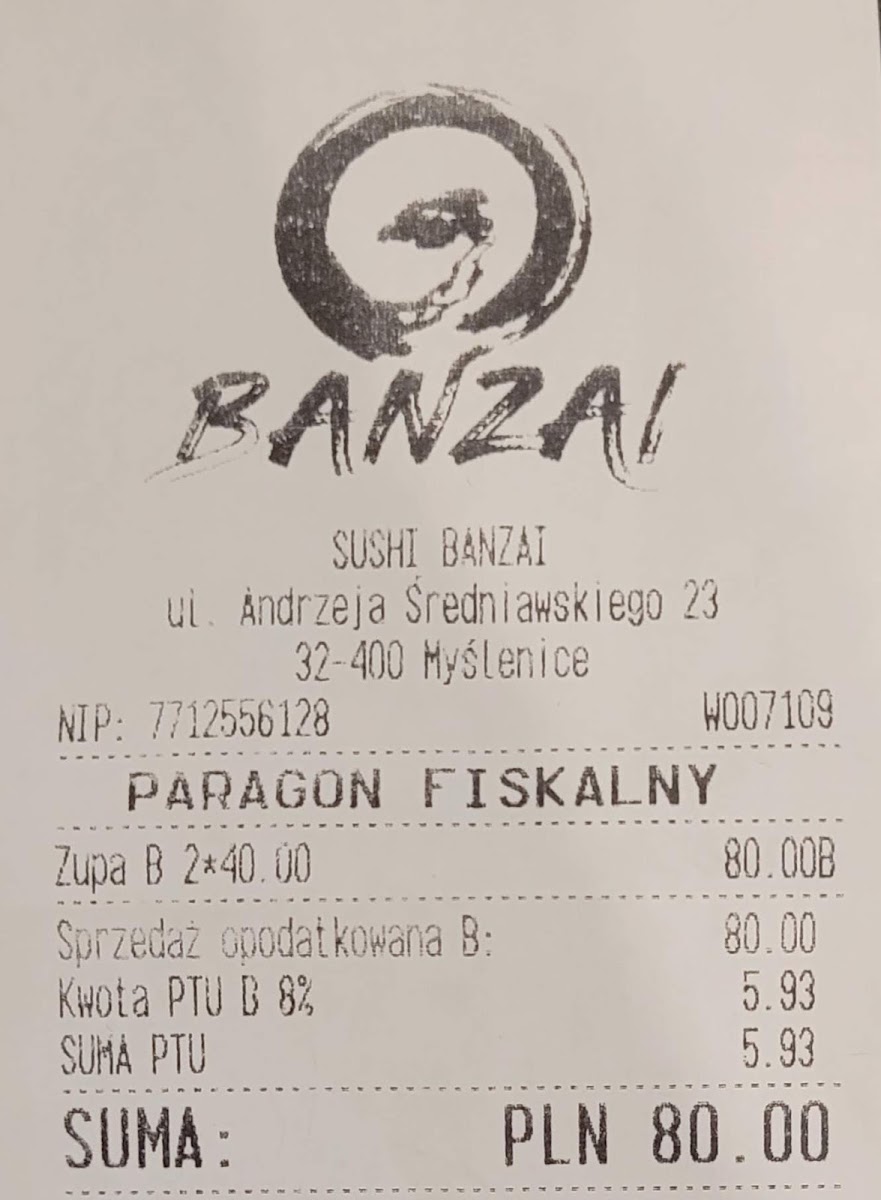 Sushi Banzai Myślenice Menu